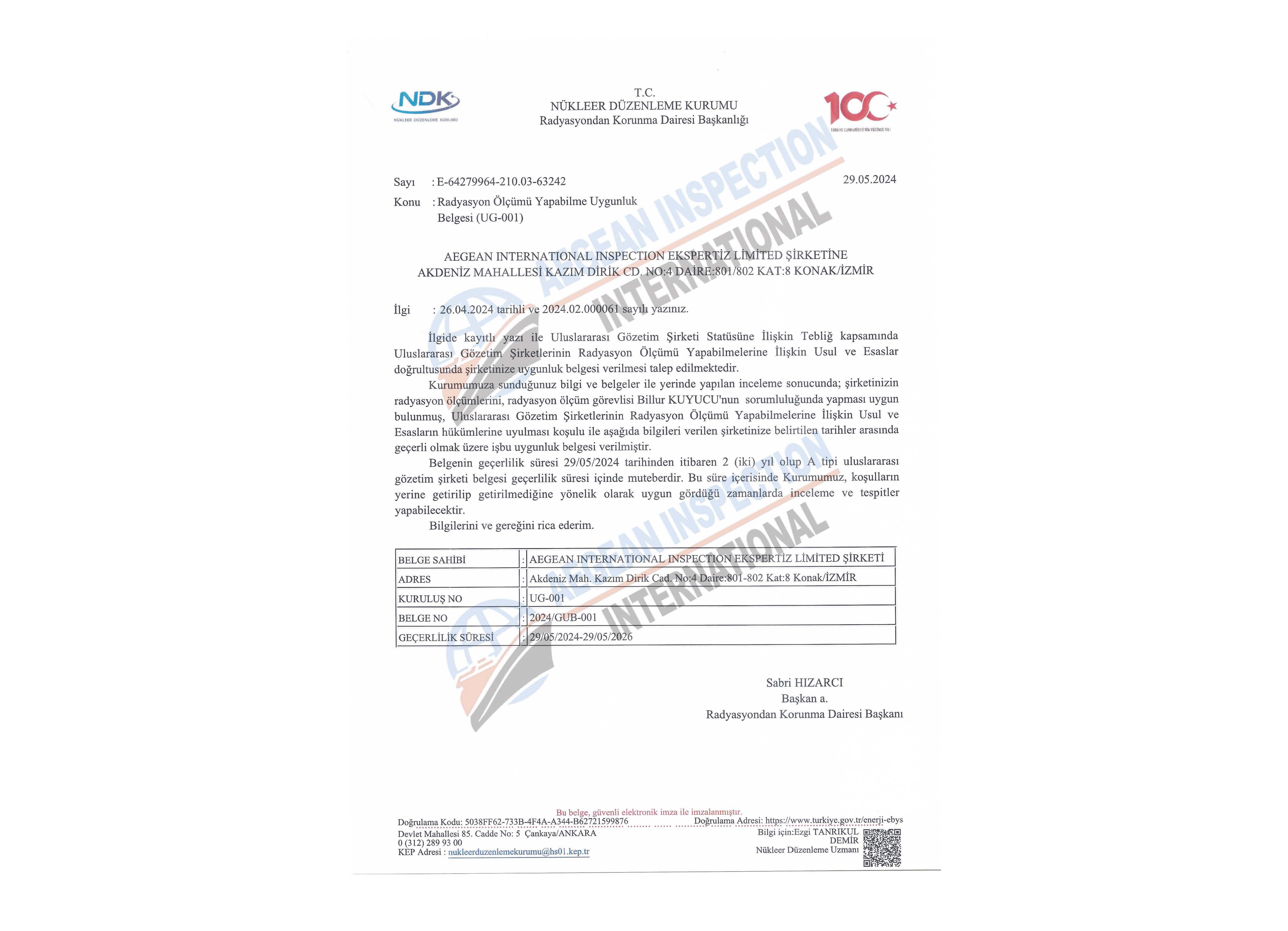 Our company has the certificates within the scope of the Maritime Trade Inspection Services Implementation Directive, Maritime Trade Inspection Services Regulation, Maritime Trade Inspection Service Directive on Dangerous Cargo and the Procedures / Principles regarding the International Inspection Companies to Perform Radiation Measurements.